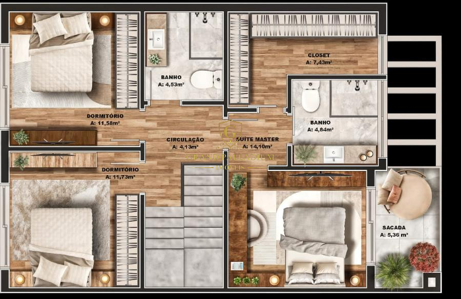 3 Dormitórios, sendo um deles uma ampla Suíte Master.